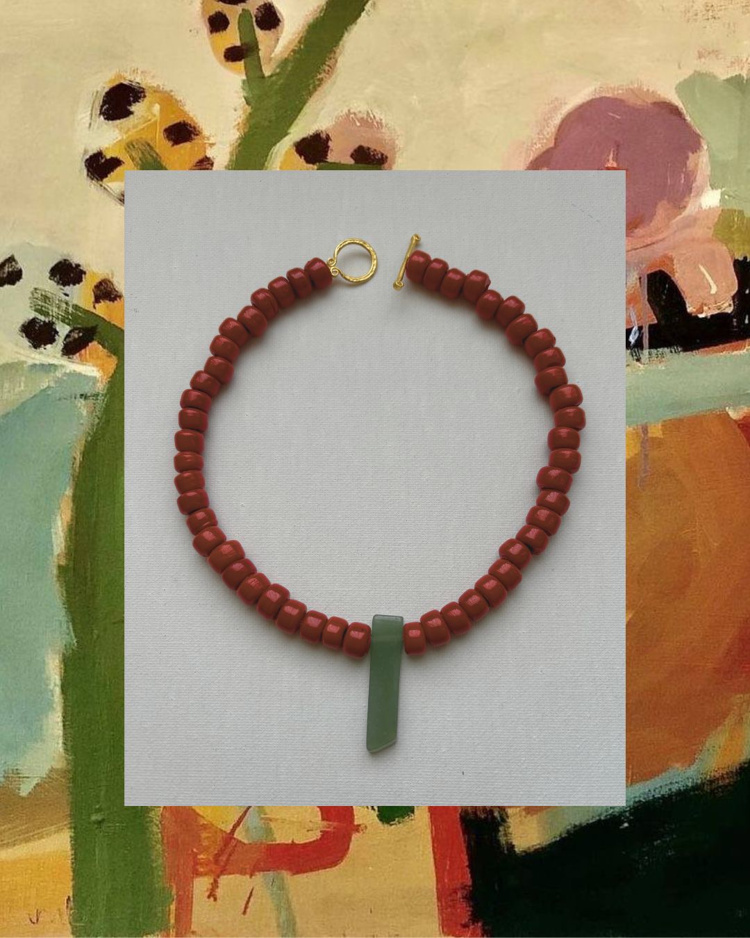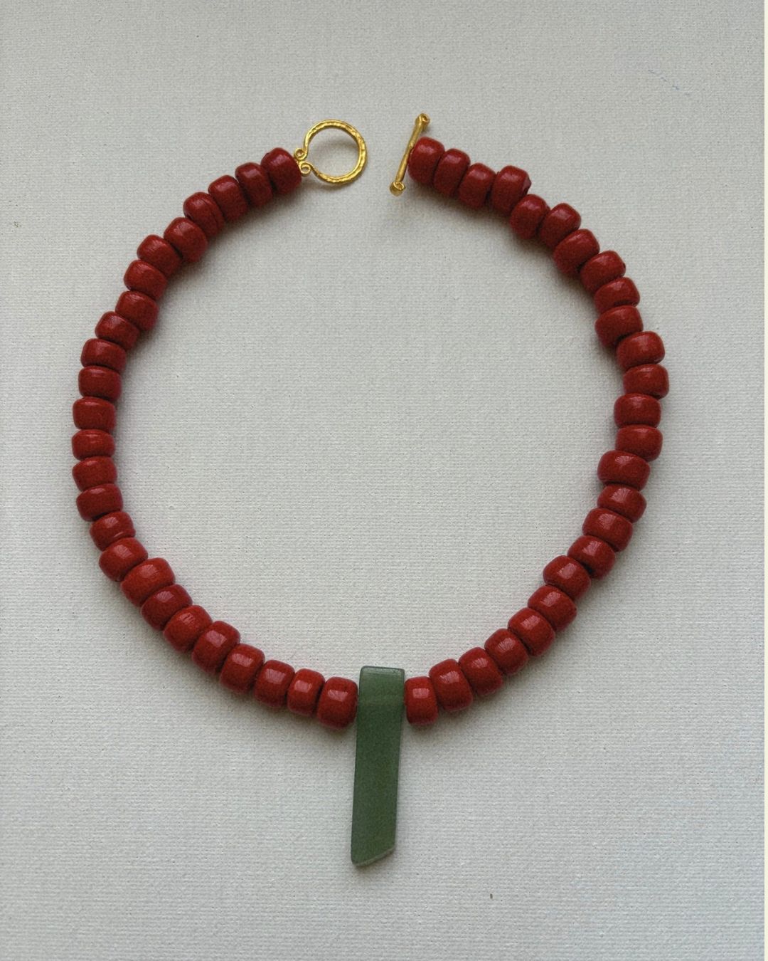 materials: Turkish glasss beads and natural green aventurine. gold plated toggle closing.