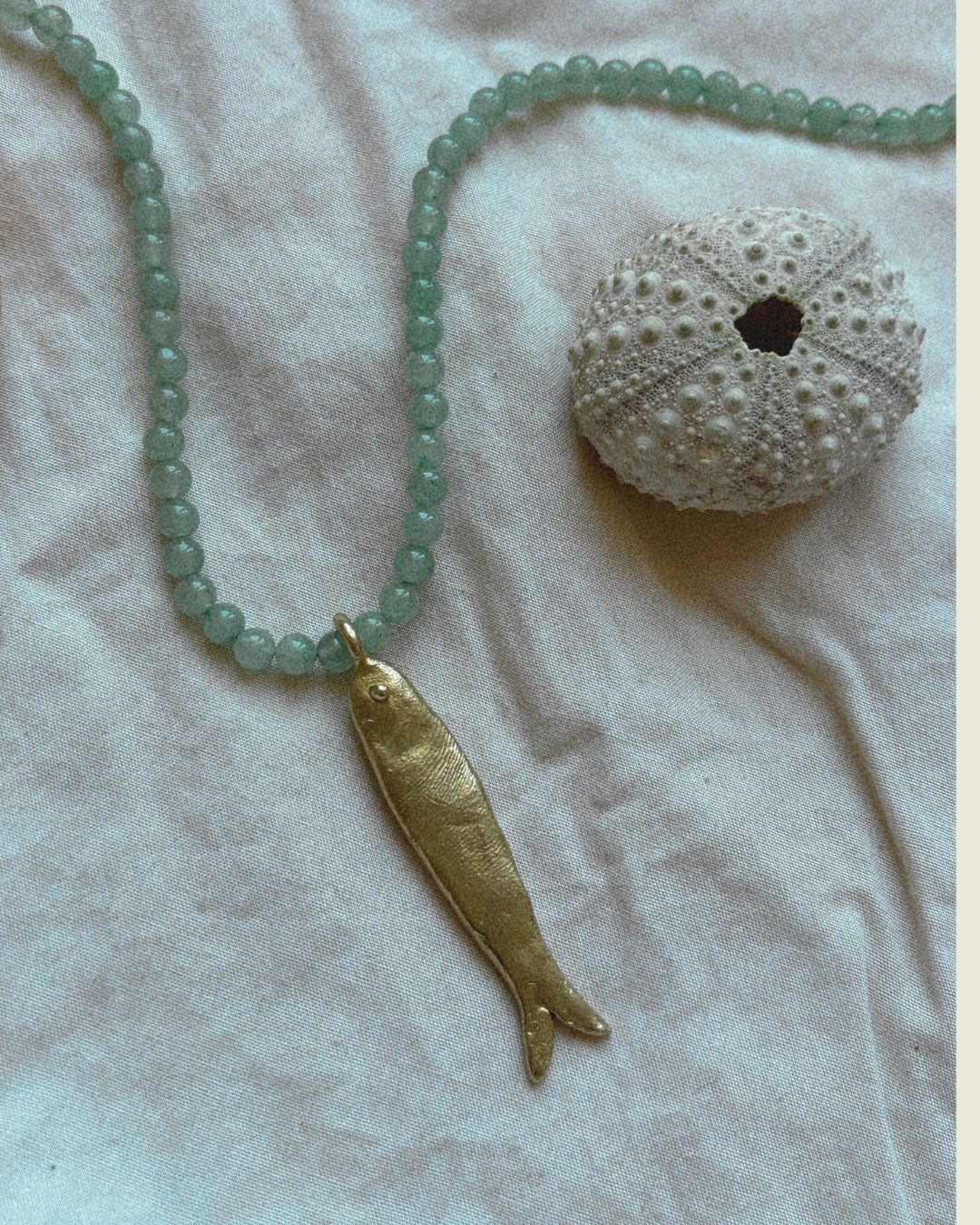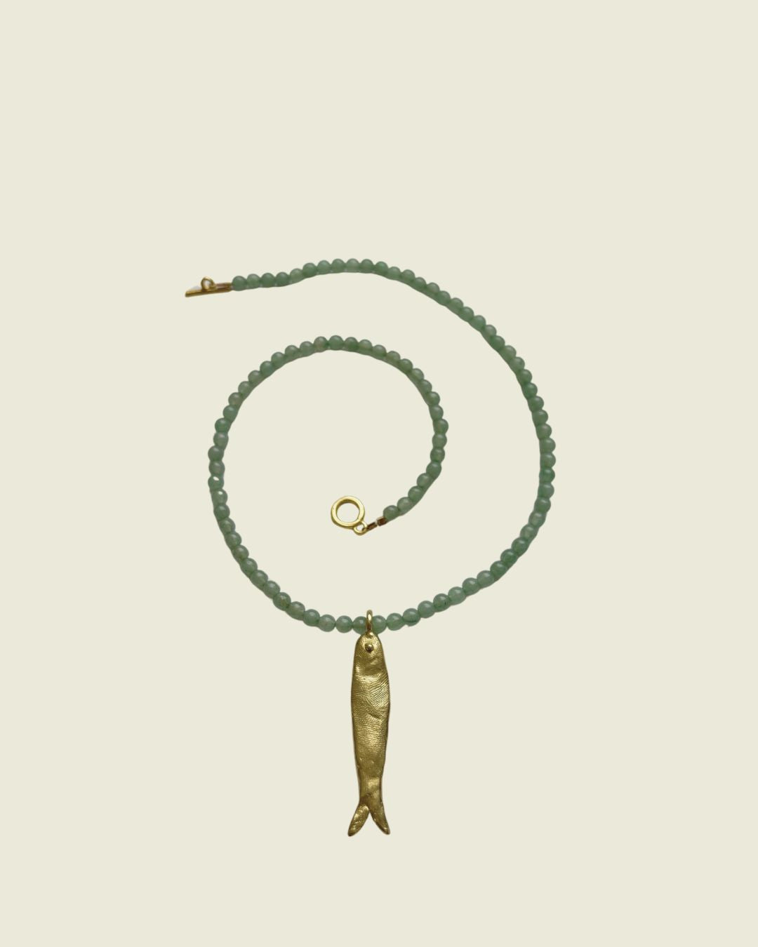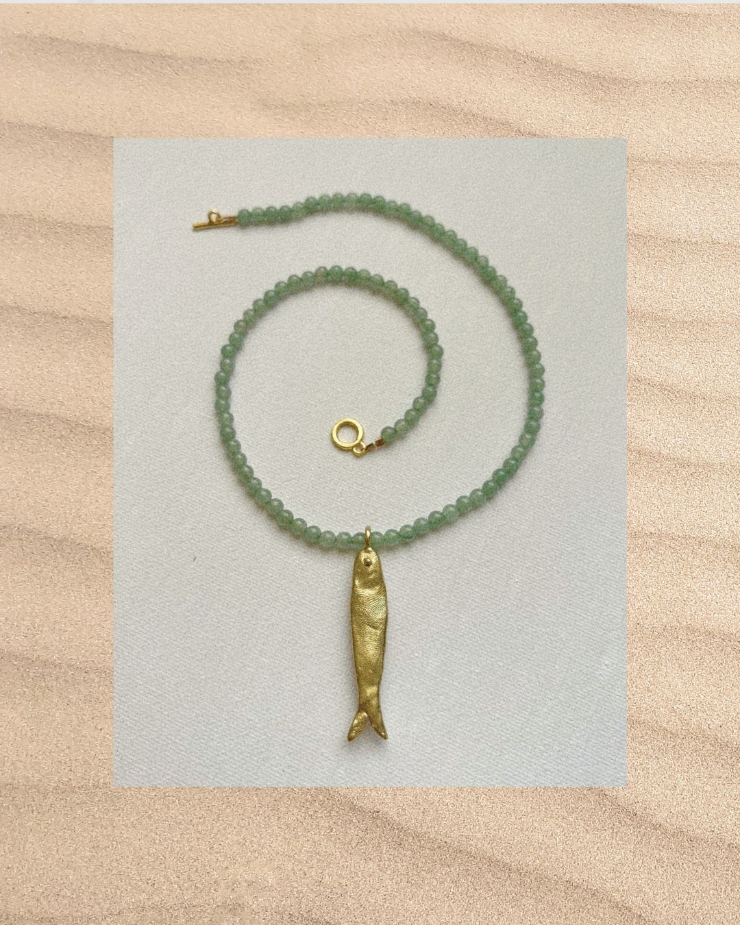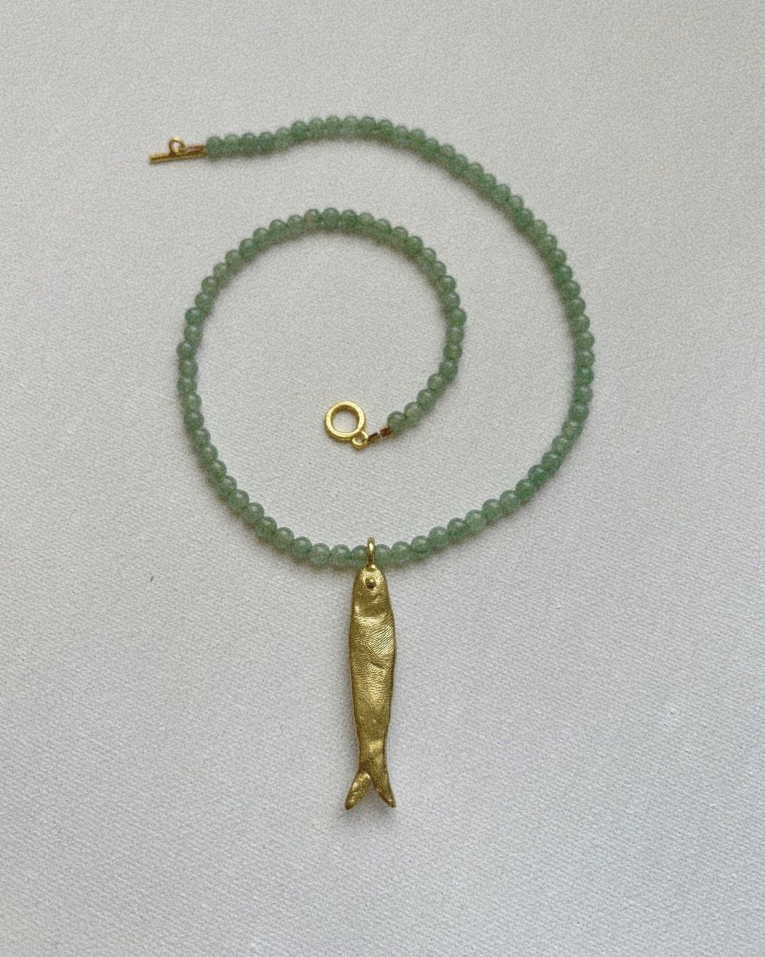 necklace is made of natural green aventurine beads and a mat gold plated toggle style closing.