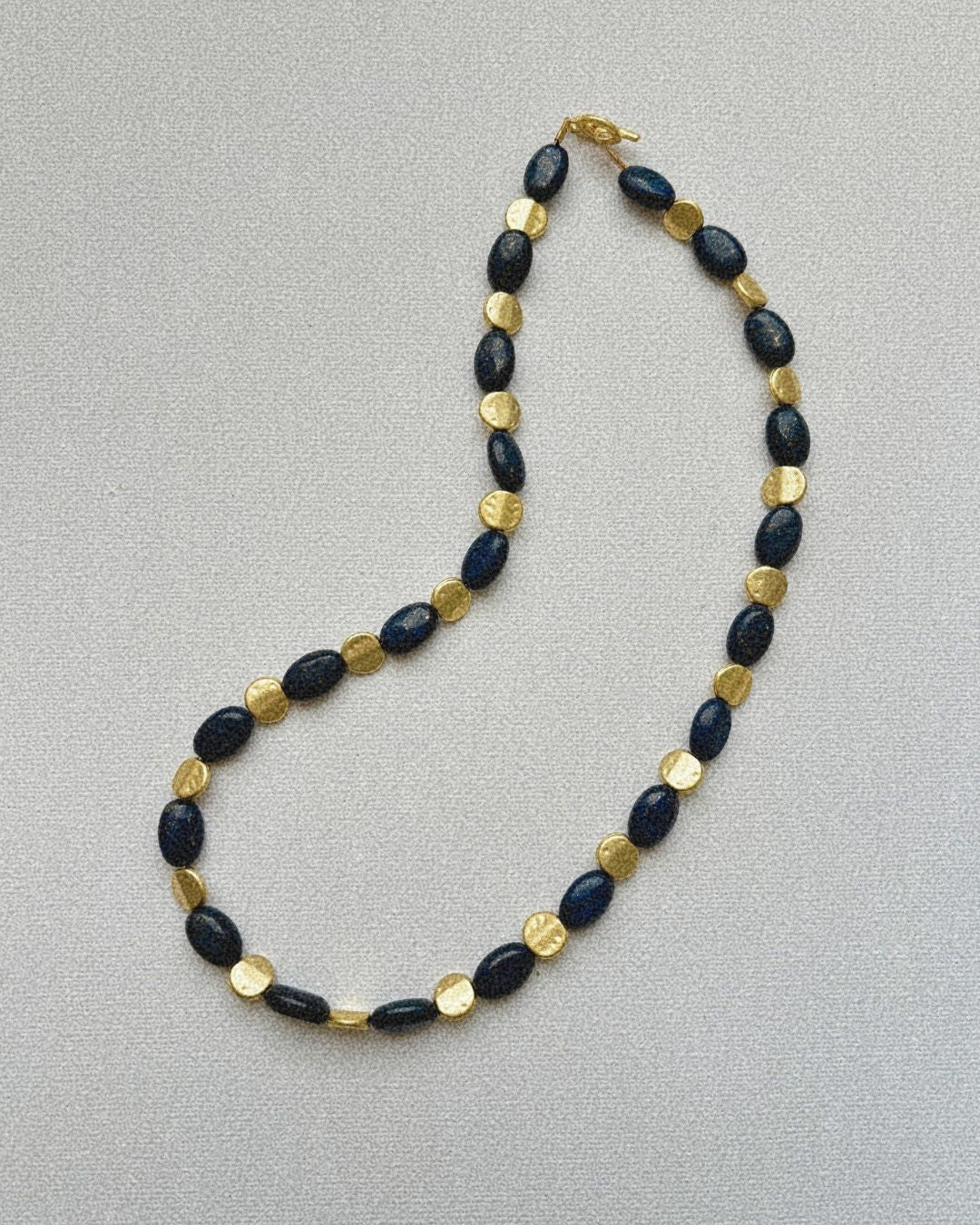 materials : natural lapis lazuli and gold plated beads with a gold plated toggle style closing.